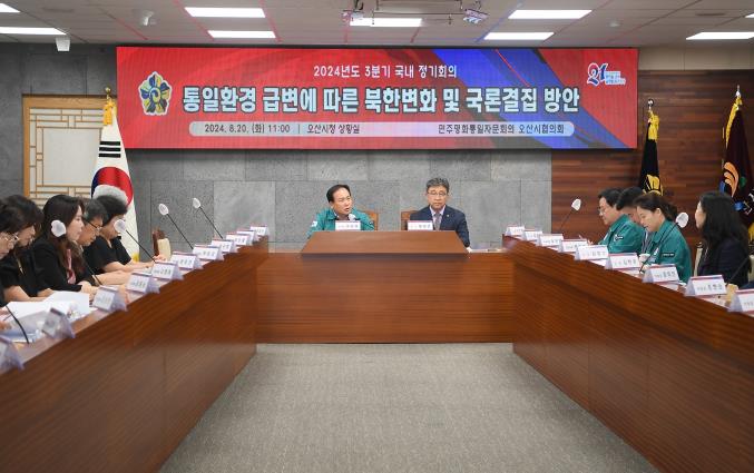 [뉴스서치] 민주평화통일자문회의 오산시협의회는 20일 오산시청 상황실에서 2024년 3분기 정기회의 및 통일의견수렴 회의를 개최했다.