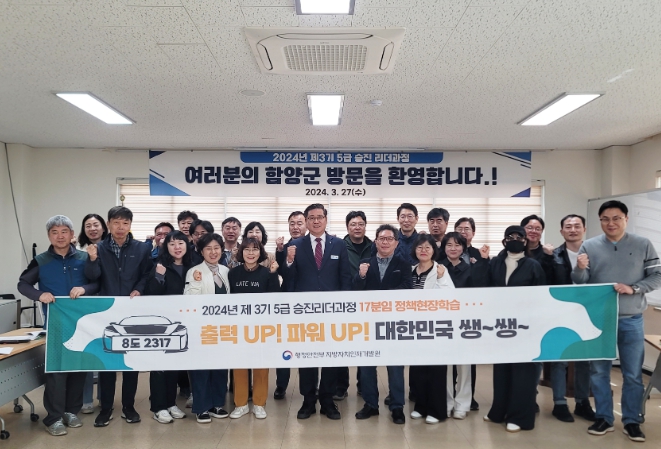 [뉴스서치] 함양군은 27일 행정안전부 지방자치 인재개발원 ‘5급 승진자과정’ 교육생 22명이 함양군을 방문해 지속 가능한 농정모델과 문화 관광지를 견학했다고 밝혔다.