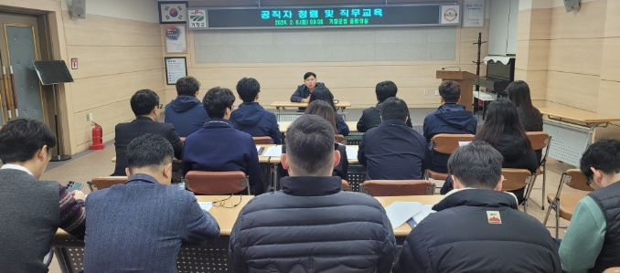 이번 교육은 직무분야에 대한 전반적인 교육을 통해 건설공사에 대한 전문지식과 업무능력을 높이고 청렴한 공직문화 정착을 위해 계획됐다,