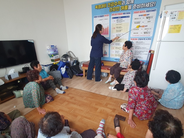 이번 순회교육은 무더위쉼터로 경로당을 이용하는 고령 어르신들에게 온열질환 예방 점검표를 통해 실태 조사를 하고, 폭염대비 건강수칙 및 온열질환 응급조치법을 교육하기 위해 마련됐다.