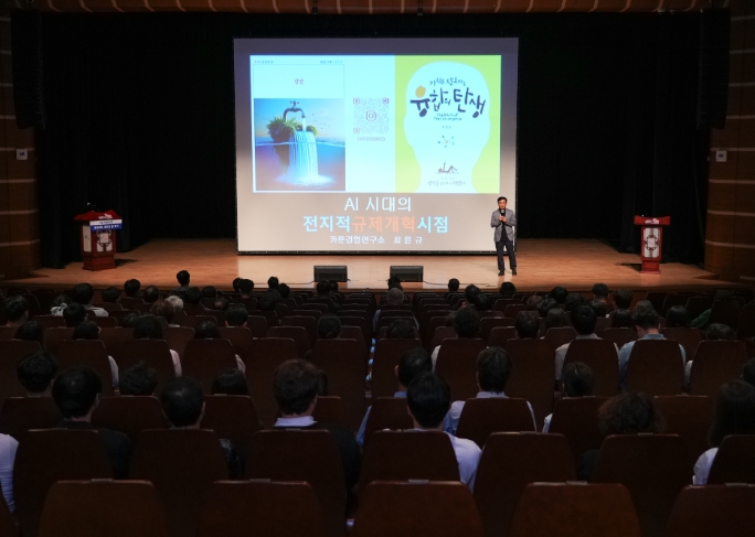 강연 주제에 걸맞게 어렵고 딱딱한 교육에서 벗어나 카툰(만화)과 동영상을 활용해 상호 소통하는 방식으로 진행된 이날 교육에서 최 소장은 새로운 융합기술과 신산업의 등장으로 기존의 규제와 틀을 가지고는 4차 산업시대에 대응할 수 없다고 말하며, 선제적 대응을 위한 공직자의 창의적이고 유연한 사고를 강조했다.
