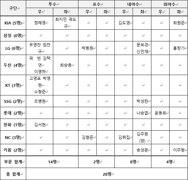 ▲ 2024 프리미어12 대표팀 명단 (28명) |