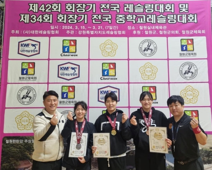 25일 완주군은 최근 강원특별자치도 철원에서 열린 제42회 회장기 전국레슬링대회에서 이지선 선수(FW72kg)가 금메달을 오정빈 선수(FW53kg)가 은메달, 한예슬 선수(FW76kg)가 동메달을 각각 따냈다.