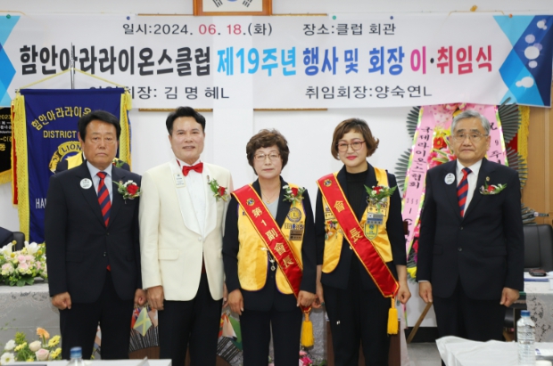 [뉴스서치] 함안아라라이온스클럽은 지난 18일 함안라이온스클럽 회관에서 제19주년 창립기념 행사 및 회장 이·취임식을 개최했다.