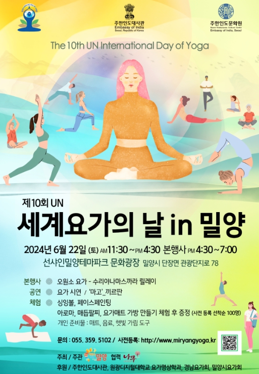 [뉴스서치] 밀양시는 오는 22일 선샤인 밀양 테마파크 문화광장에서 ‘2024 제10회 UN 세계 요가의 날 기념행사’를 개최한다고 밝혔다.