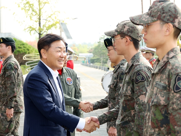 투어 시작 전, 김관영 도지사는 도청 광장에서 장병들의 노고를 치하하는 자리를 마련하고 장병들을 격려했다.