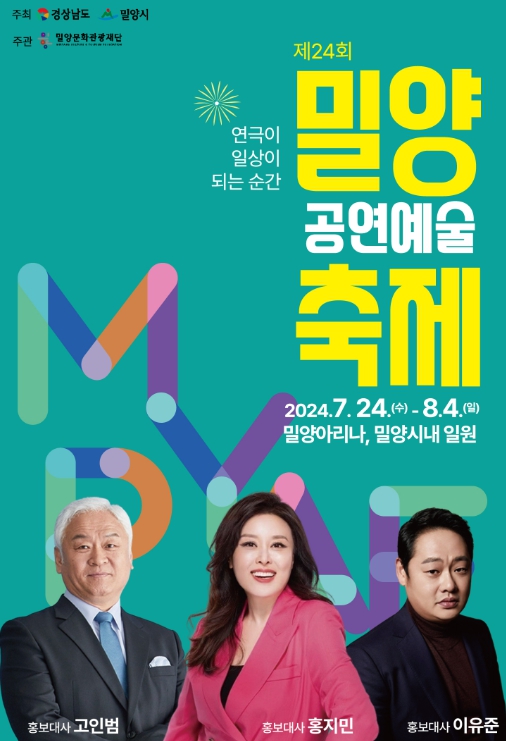 [뉴스서치] 밀양시는 오는 24일부터 8월 4일까지 12일간 밀양아리나에서 개최되는 제24회 밀양공연예술축제를 대한민국 대표연극축제라는 명성에 걸맞게 준비하고 있다고 밝혔다.