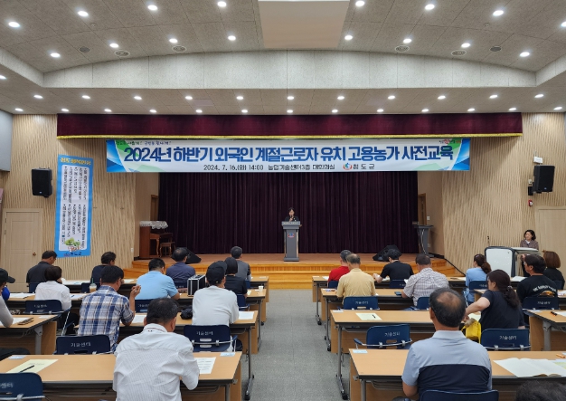 [뉴스서치] 청도군은 지난 16일 농업기술센터에서 2024년 하반기 외국인 계절근로자 도입을 위한 고용농가 40명을 대상으로 사전교육을 실시했다.