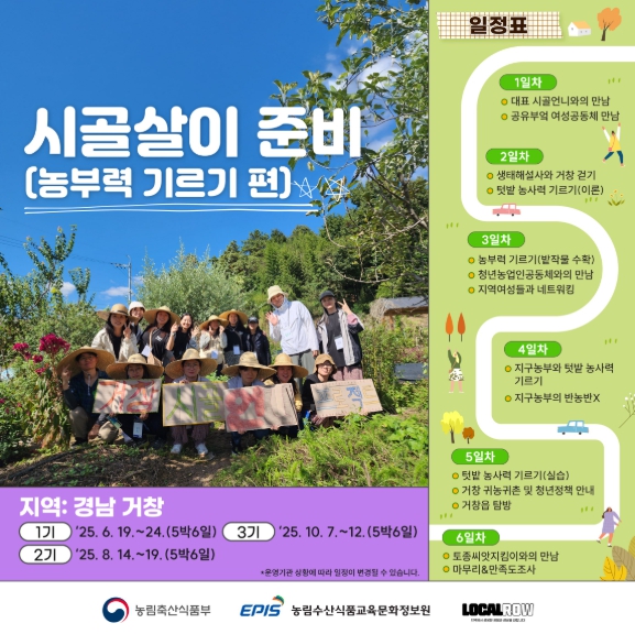 [뉴스서치] 농림축산식품부는 2025년 '청년 여성 농업·농촌분야 탐색교육(시골언니 프로젝트)'을 6월부터 10월까지 운영한다고 밝혔다.