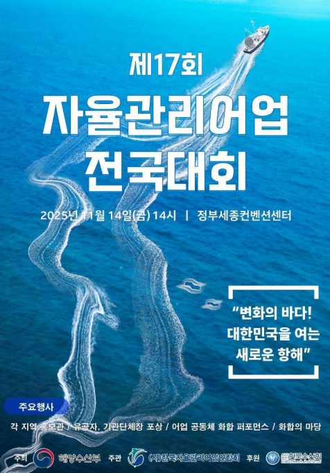 [뉴스서치] 해양수산부는 11월 14일 정부세종컨벤션센터에서 ‘변화의 바다! 대한민국을 여는 새로운 항해’라는 주제로 ‘제17회 자율관리어업 전국대회’를 개최한다고 밝혔다.