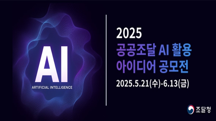 [뉴스서치] 조달청은 공공조달 분야에 인공지능(AI)을 활용하여 조달 업무나 일하는 방식을 개선할 수 있는 아이디어를 발굴하기 위해 ‘2025 공공조달 AI 활용 아이디어 공모전’을 개최한다.