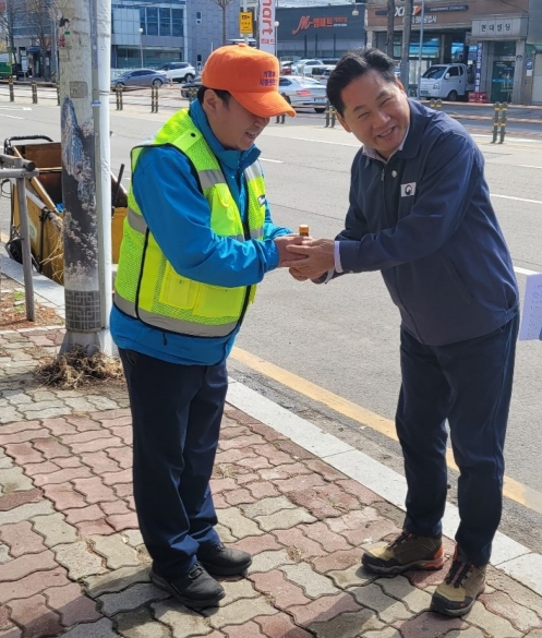 그리고 새봄맞이 대청소 날에 취약지역인 행정타운 주변 환경정화에 참여하여 직원들에게 “현장을 체험해 보니 여러분들의 노고를 알겠다. 우리가 서로 보듬고 함께 나가면 하는 일들에 시너지효과가 반드시 있을 것”이라고 말했다.