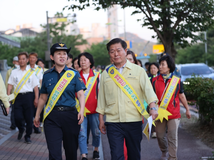 이날 박승원 시장을 비롯한 100여 명의 순찰단은 소하지구대를 시작으로 소하 휴먼시아 6단지, 소하도서관을 지나며 인근 주거지역의 치안을 살폈다. 이어 야간시간대 시민 왕래가 많은 이마트 광명소하점 인근, 소하 상업지구, 한내 근린공원을 순찰하며 CCTV, 로고젝터, 보안등 등 범죄 예방 시설물도 함께 점검했다.