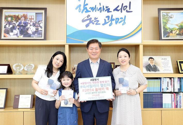 3년째 광명시민 책 한 권 함께 읽기 챌리지에 참여하고 있는 박승원 시장은 지난 13일 독서릴레이 시민주자에게 올해의 책을 전달했다. 박 시장은 “독서는 우리에게 무한한 가능성을 열어주고 세상과 소통하는 창구”라며 “시민들이 책을 읽으며 서로의 생각을 나누고 공감하여 문화적 향유를 함께 누리는 책으로 행복한 광명시가 되길 바란다”고 말했다.