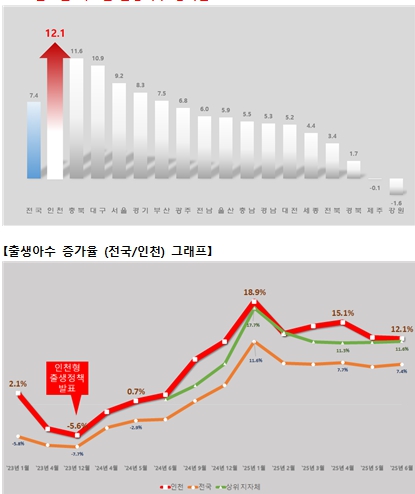 [뉴스서치] 인천광역시는 2025년 상반기 출생아 수 증가율에서 전국 1위를 기록했다고 밝혔다.