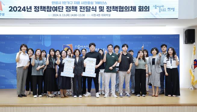 [뉴스서치] 안성시는 다양한 1인가구 정책 수요를 반영하고자 지난 8월 13일 정책참여단 정책 전달식 및 정책협의체 회의를 개최했다.
