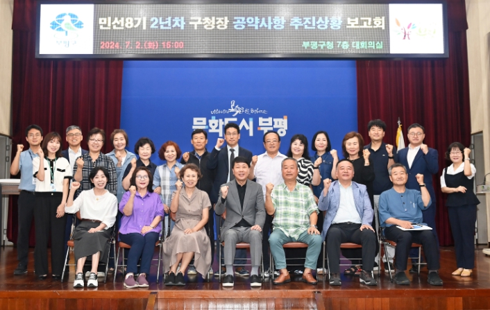 [뉴스서치] 부평구는 2일 구청 대회의실에서 부평구 공약이행평가단과 공약 추진 소관 국·소·과장이 함께하는 ‘민선8기 2년차 구청장 공약사항 추진상황 보고회’를 개최했다.