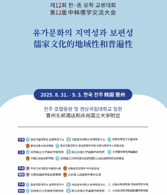 [뉴스서치] 경상국립대학교 경남문화연구원 남명학연구소(소장 강정화 한문학과 교수)는 9월 1~2일 진주와 산청 일원에서 ‘제12회 한‧중 유학 교류대회’를 개최한다.