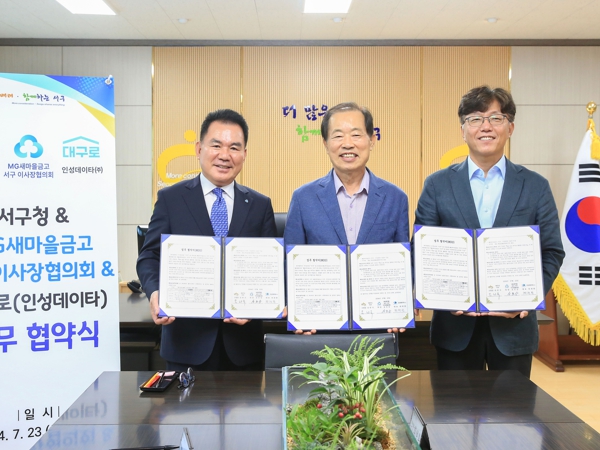 [뉴스서치] 대구 서구청은 23일 ‘MG새마을금고 서구 이사장협의회’, 대구로앱 운영사‘인성데이타(주)’와 대구로 서구day 업무협약식을 가졌다.