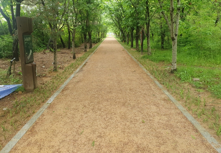 특히 자연적으로 만들어진 공원 내 흙길 산책로와 어우러질 수 있도록 하는 등 적은 예산을 들이면서 기존의 환경과 미관을 최대한 살리는 데 초점을 뒀다. 또, 잘 자란 왕벚나무 사이를 걸으며 힐링하는 최적의 맨발 걷기 장소로 조성했다.
