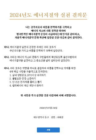 대구 동구청, 2024년 에너지 절약 실천 결의
