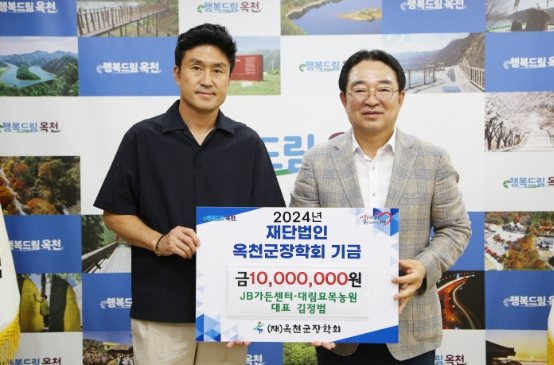 [뉴스서치] JB가든센터·대림묘목농원(대표 김정범)은 14일 옥천군청을 방문해 장학금 1,000만 원을 옥천군장학회에 기탁했다.