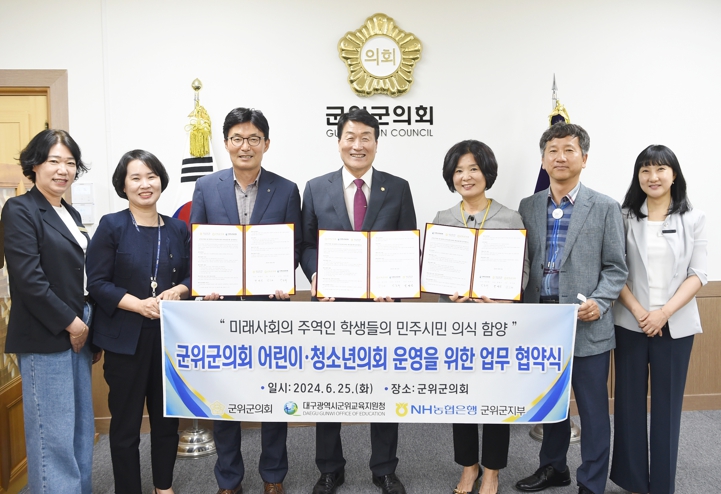 [뉴스서치] 대구광역시 군위군의회가 군위군 어린이·청소년의회 설립 및 운영을 위해 군위군의회, 대구광역시군위교육지원청, NH농협은행 군위군지부 3자간 업무협약을 체결했다.