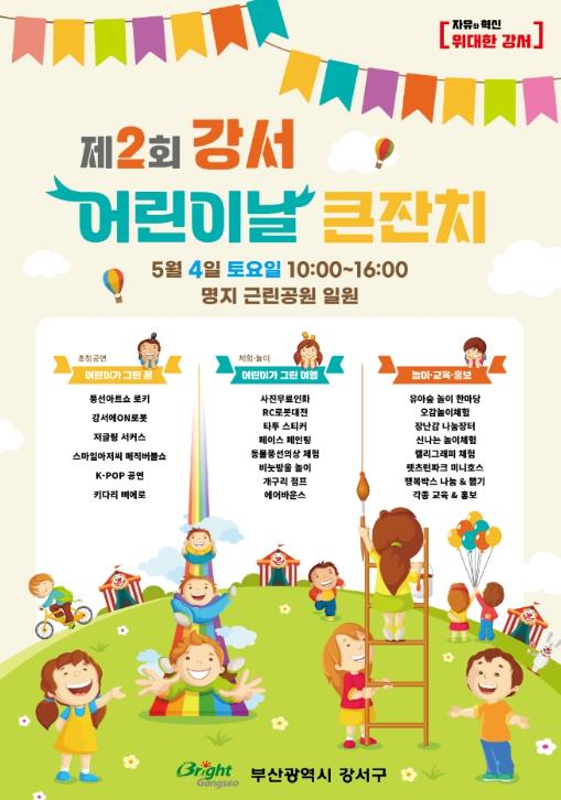 [뉴스서치] 부산 강서구는 102회 어린이날을 맞아 5월 4일 오전 10시부터 명지근린공원에서 ‘제2회 강서 어린이날 큰잔치’를 개최한다.