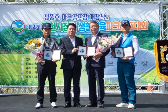 이날 김창규 제천시장은 청풍호 파크골프장 조성에 물심양면으로 도움을 준 장운봉 제천파크골프협회장, 유찬상 제천파크골프협회 기술이사, 정운현 중전 이장에게 고마움을 표시하며 감사패를 전달했다.