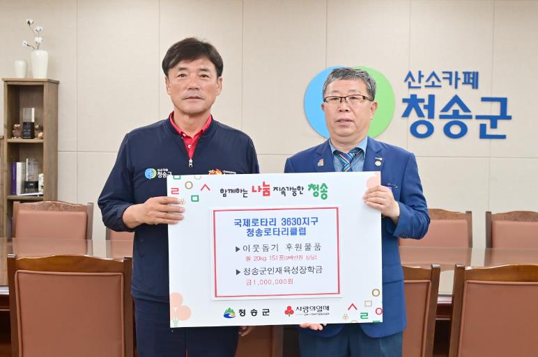 ▲ 국제로타리 3630지구 청송로타리클럽 취약계층에 따뜻한 나눔 전달 : 쌀 151포, 장학금 100만원 기부 |