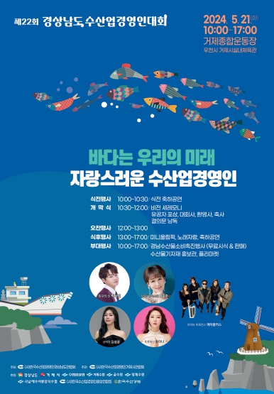 [뉴스서치] “바다는 우리의 미래, 자랑스러운 수산업경영인” 슬로건으로 수산업경영인 저력 표출 및 화합을 위한 경상남도 수산업경영인 대회를 오는 2024년 5월 21일 거제종합운동장에서 개최한다.