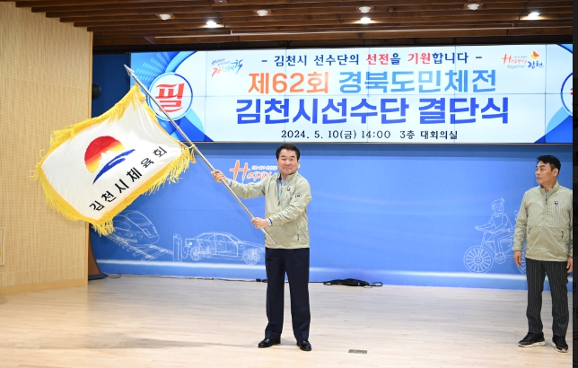 [뉴스서치] 10일 김천시청 3층 강당에서 김천시장, 도·시의원, 기관단체장, 김천시체육회장, 출전선수와 임원 등 240여 명이 참석한 가운데 제62회 경북도민체육대회 김천시 선수단 결단식을 개최했다.