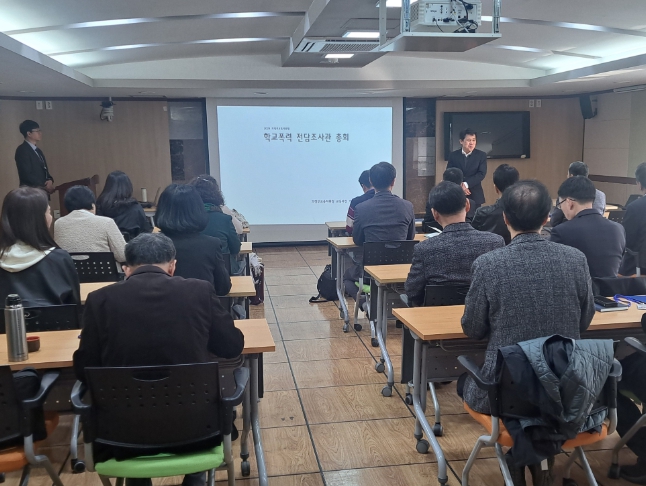 이날 총회에서 이덕준 교육과장은 학교 폭력 사안에 대한 교육적 해결을 위한 학교폭력전담조사관의 역할을 강조하면서 학교폭력 사안 조사 사례를 공유하고, 사안 조사시 준수 사항 및 역량 강화를 위한 연수도 진행했다.
