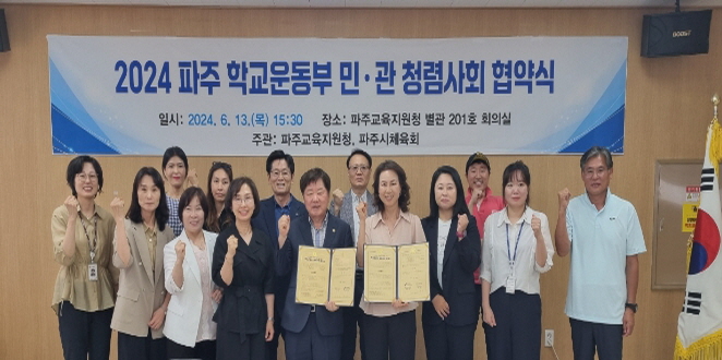 [뉴스서치] 파주교육지원청은 6월 13일 학교운동부 민‧관 청렴사회 협약식 및 학교체육진흥위원회를 개최했다.