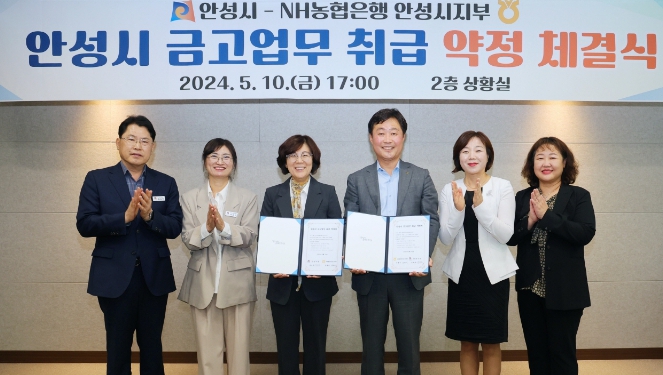 [뉴스서치] 안성시는 지난 10일 시청 상황실에서 안성시 차기 금고로 선정된 NH농협은행 안성시지부와 시 금고 업무 취급을 위한 약정식 체결했다고 밝혔다.