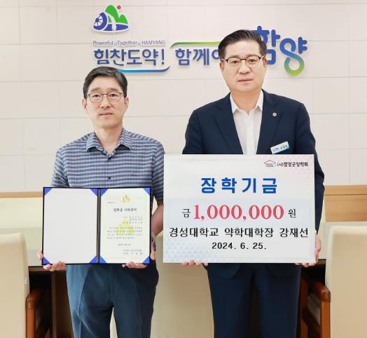 [뉴스서치] 사단법인 함양군장학회는 6월 25일 강재선 경성대학교 약학대학장이 함양군을 찾아 장학금 100만 원을 기탁했다고 밝혔다.