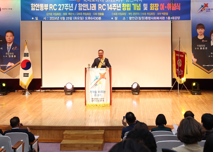 [뉴스서치] 함안 동부·나래로타리클럽은 지난 25일 오후 6시 30분, 함안종합사회복지관 1층 대강당에서 함안동부로타리클럽 창립 제27주년, 함안나래로타리클럽 창립 제14주년 기념식 및 회장 이·취임식을 개최했다.
