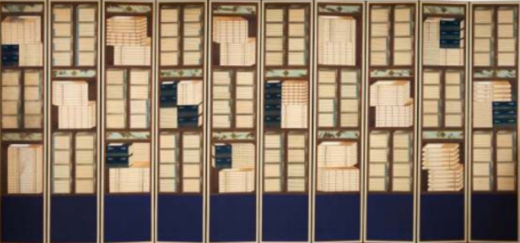 ▲ 책가도 병풍(冊架圖 屛風) 복제본 |