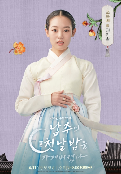 먼저 여리여리한 하늘빛 치마에 베이지색 저고리를 곱게 차려입은 조은애(권한솔 분) 포스터는 정석 여주인공의 면모를 단아한 분위기로 고스란히 담아내고 있다.