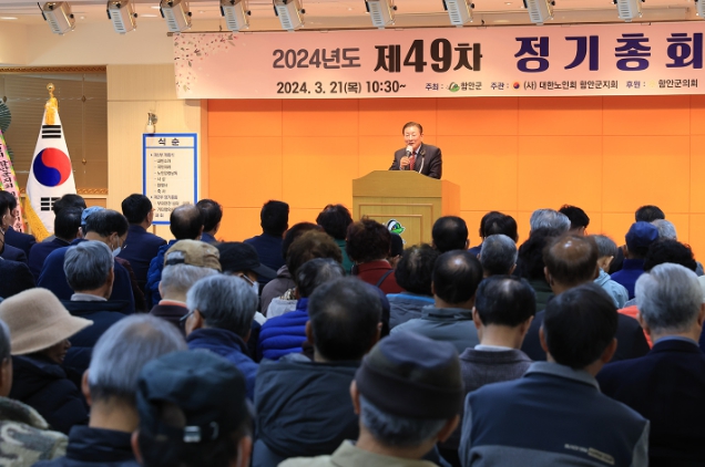 [뉴스서치] (사)대한노인회 함안군지회(지회장 이학동)는 21일 함안문화예술회관 연회장에서 조근제 함안군수, 조영제‧조인제 경남도의원을 비롯한 주요 내빈, 노인회 군지회 임원, 대의원, 읍면 경로당 회장 등 380여 명이 참석한 가운데 제49차 정기총회를 개최했다.