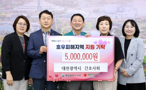 [뉴스서치] 대전 서구는 25일 대전광역시간호사회(회장 박순선)와 관내 호우피해 침수 가구 지원을 위한 구호 성금(500만 원) 기탁식을 가졌다.