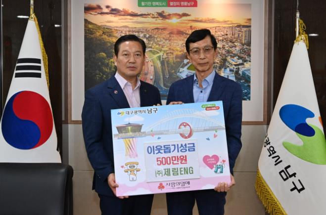 [뉴스서치] 대구 남구는 지난 23 ㈜제림ENG(대표:양중열)에서 이웃돕기 성금 500만원을 기탁했다고 밝혔다.