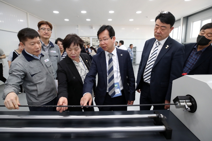 박병규 청장을 비롯한 광산구 경제사절단의 기업인들은 박인철 무송지오씨(주) 대표이사와 함께 공장 시설을 둘러보면서 기업 운영 상황, 현지 진출 과정 등에 대한 설명을 들었다.