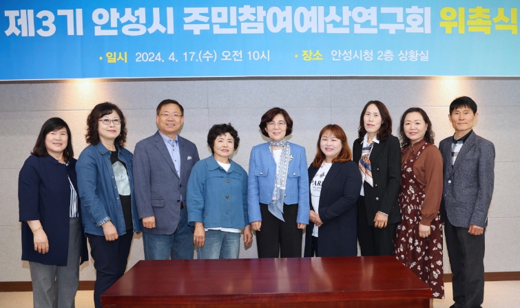 [뉴스서치] 안성시는 지난 17일, 시청 2층 상황실에서 ‘제3기 주민참여예산연구회’ 위촉식 및 회의를 개최했다고 밝혔다.