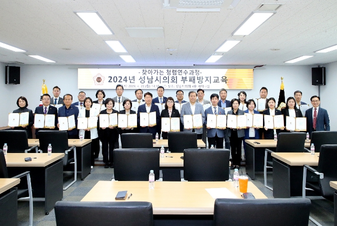 [뉴스서치] 성남시의회에서는 지난 4월 22일 의회 4층 세미나실에서 성남시의회 의원을 대상으로 부패방지교육을 했다.