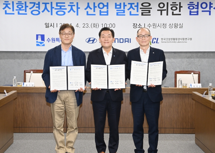 이날 협약식에는 이재준 수원시장, 홍기철 현대자동차 상무, 이상권 KCL 부원장(원장 직무대행) 등이 참석했다.