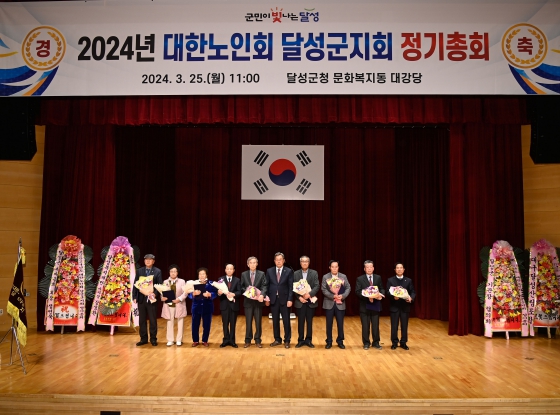 [뉴스서치] 대한노인회 달성군지회는 지난 25일 군청 문화복지동 대강당에서 최재훈 달성군수, 서도원 달성군의회 의장 및 군의원, 각 경로당 회장 등 400여 명이 참석한 가운데 대한노인회 달성군지회 2024년 정기총회를 개최했다.