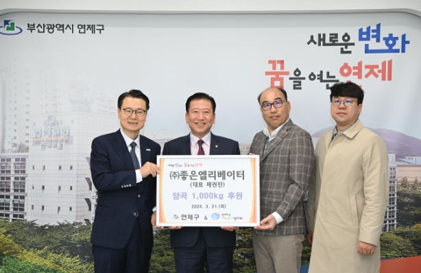 [뉴스서치] 연제구와 연제구사회복지협의회(회장 박동호)는 지난 21일 ㈜좋은엘리베이터(대표 제권진)로부터 양곡 1,000kg을 전달받았다.