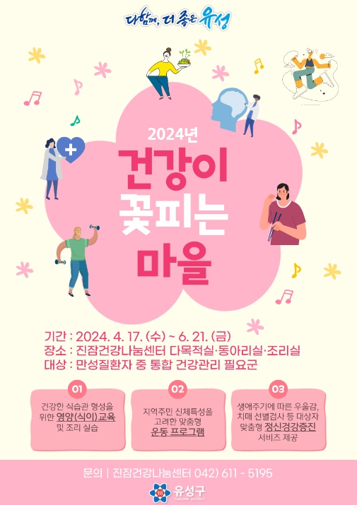 정용래 유성구청장은 “앞으로도 유관기관과의 협업을 통해 마을 주민에게 양질의 건강 프로그램을 제공할 수 있도록 노력하겠다”고 말했다.