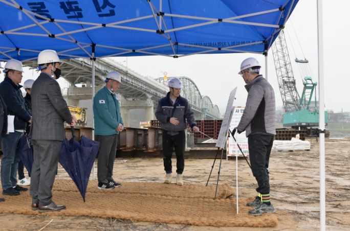 최원철 시장은 “착공은 지난해 8월에 했지만 하천점용허가 변경 등 행정절차 과정에서 다소 지연된 부분이 있었다. 철저한 공정관리를 통해 부진했던 공정을 만회할 수 있도록 각고의 노력을 기울여 달라”고 당부했다.